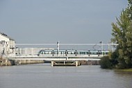 Passage d'un tramway sur le pont des écluses des bassins à flot -