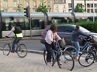 Illustration cyclistes et tramway -